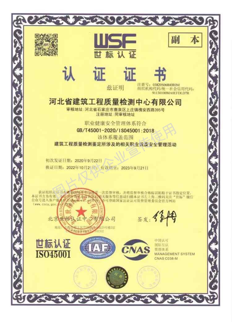 河北省建筑工程質量檢測中心營業執照